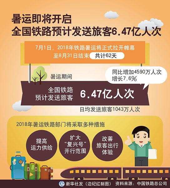 圖表:暑運(yùn)即將開啟 全國鐵路預(yù)計(jì)發(fā)送旅客6.47億人次 新華社發(fā) 邊紀(jì)紅 制圖