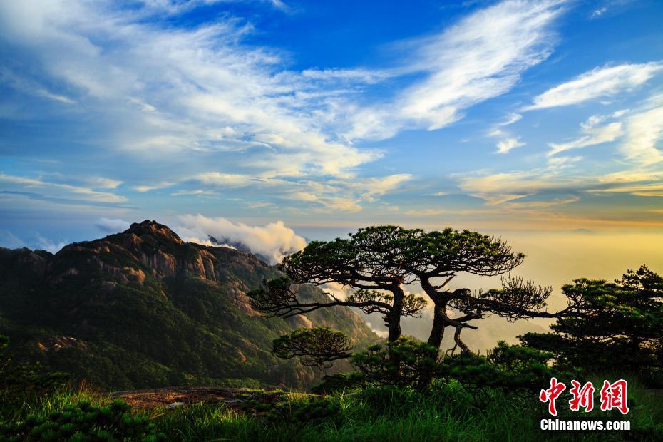 6月29日傍晚,安徽黃山風景區(qū)雨后出現(xiàn)云海和晚霞景觀,宛如壯麗畫卷。中新社發(fā) 方立華 攝