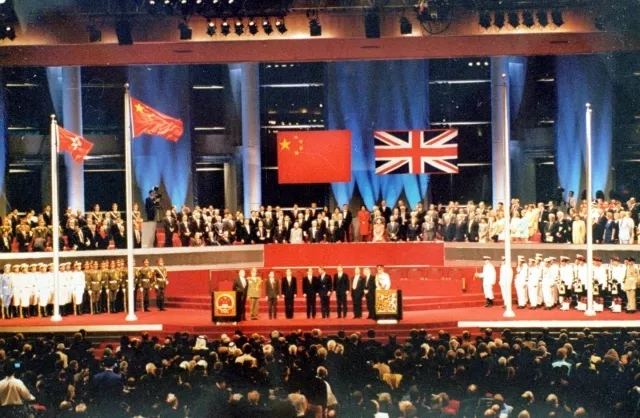 1997年6月30日至7月1日凌晨,中英香港政權(quán)交接儀式在香港會(huì)展中心舉行。新華社發(fā)