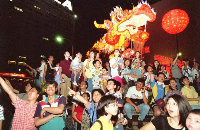 1997年7月1日晚,香港特區(qū)政府為慶祝香港回歸舉行萬丈光芒慶回歸煙花會(huì)。圖為觀賞煙花的香港市民。新華社發(fā)