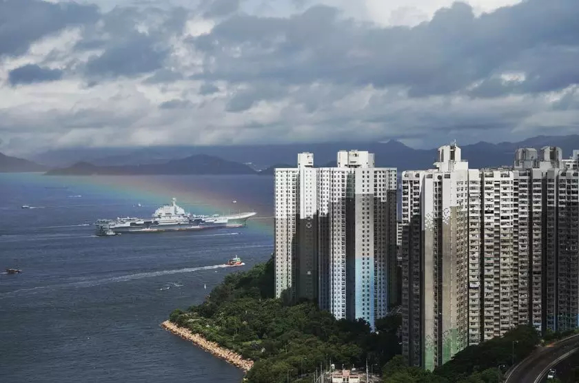 2017年7月7日,海軍遼寧艦在香港南丫島附近航行。當(dāng)日,正在執(zhí)行跨區(qū)機(jī)動(dòng)訓(xùn)練任務(wù)的中國人民解放軍海軍航母編隊(duì)抵達(dá)香港,參加香港回歸祖國暨中國人民解放軍進(jìn)駐香港20周年慶?;顒?dòng),受到香港特區(qū)政府和民眾熱烈歡迎。 新華社發(fā)(王申攝)