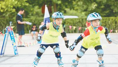 北京市通州區(qū)運(yùn)河文化廣場(chǎng),小朋友在滑輪滑。王丹楓攝
