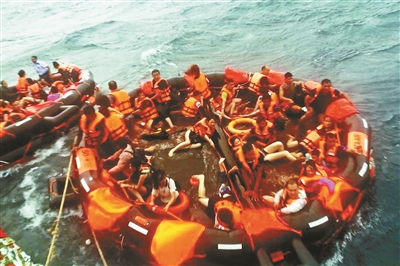 在“鳳凰號(hào)”下沉之前,陳林就跳下了水,他把救生筏解開(kāi),還救起了兩個(gè)孩子。