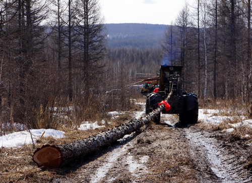 2015年3月28日,內(nèi)蒙古大興安嶺圖里河林業(yè)局砍伐的最后一段木材被運(yùn)下山 鄒儉樸/攝