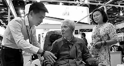第七屆中國國際養(yǎng)老服務業(yè)博覽會現(xiàn)場,一款理療設(shè)備吸引了老年觀眾的關(guān)注。新華社發(fā)
