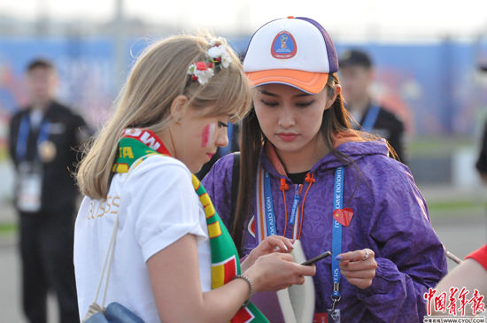 盡管球迷的問題繁多且復(fù)雜,但對徐琛和田晨而言,在球迷最需要的時候提供服務(wù),這種成就感可以彌補一些不能走進球場的遺憾。田晨發(fā)現(xiàn),相較而言,中國球迷普遍靦腆,很少有人主動上前詢問,他們更習(xí)慣于埋著頭用手機進行查詢,為了讓更多中國球迷得到幫助,他和徐琛申請在俄語、英語之外增加中文廣播,并在證件上貼上了五星紅旗的標(biāo)志,“這樣做的效果好了很多,大家遠(yuǎn)遠(yuǎn)地就會說有個中國志愿者,就圍了上來,還主動合照?!遍L相甜美且會四國語言的徐琛,也因此以“世界杯最美中國志愿者”上了熱搜,每次有中國球迷走過來,其他志愿者就會跟她說:“你的中國朋友又來找你了?!?/p>