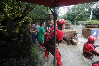 與唐成成一同被困的還有四個(gè)人,其中三人是朋友,另一人一樣由于獨(dú)行被困?!八粗鴿q,要是再過(guò)不去就麻煩了,后面就是大河,旁邊的水也過(guò)腰間了?!闭诮辜敝畷r(shí),一支趕到金海岸小區(qū)探查水情的消防隊(duì)員出現(xiàn)在了幾人面前。