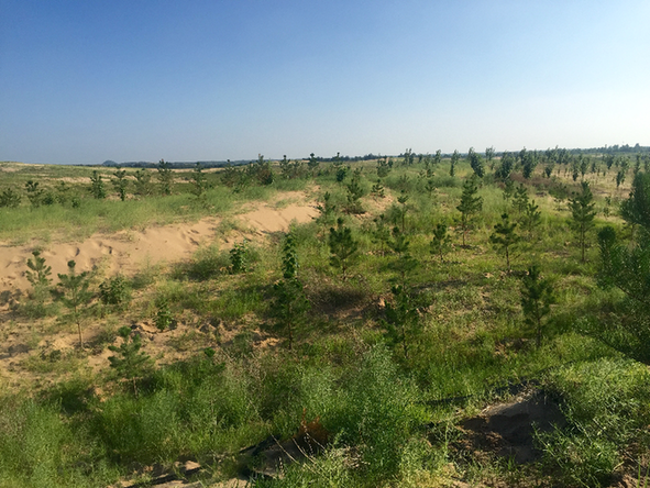 現(xiàn)在正處三北工程第五期階段,王海英說,當(dāng)下科左后旗所剩余的沙地造林地段,地理位置偏遠,相比以前來說,難度加大。一是交通不方便,以前可以機器造林,現(xiàn)在只能人工用車子拉進沙地。二是以前可以裸栽,現(xiàn)在需帶土容器苗栽培,為了保護好樹根不折斷。三是澆水困難。造林當(dāng)年需在每三四百畝地之間打一口4—6寸口徑、深二十米左右的井,第二年以后就基本可以依靠雨水了。
