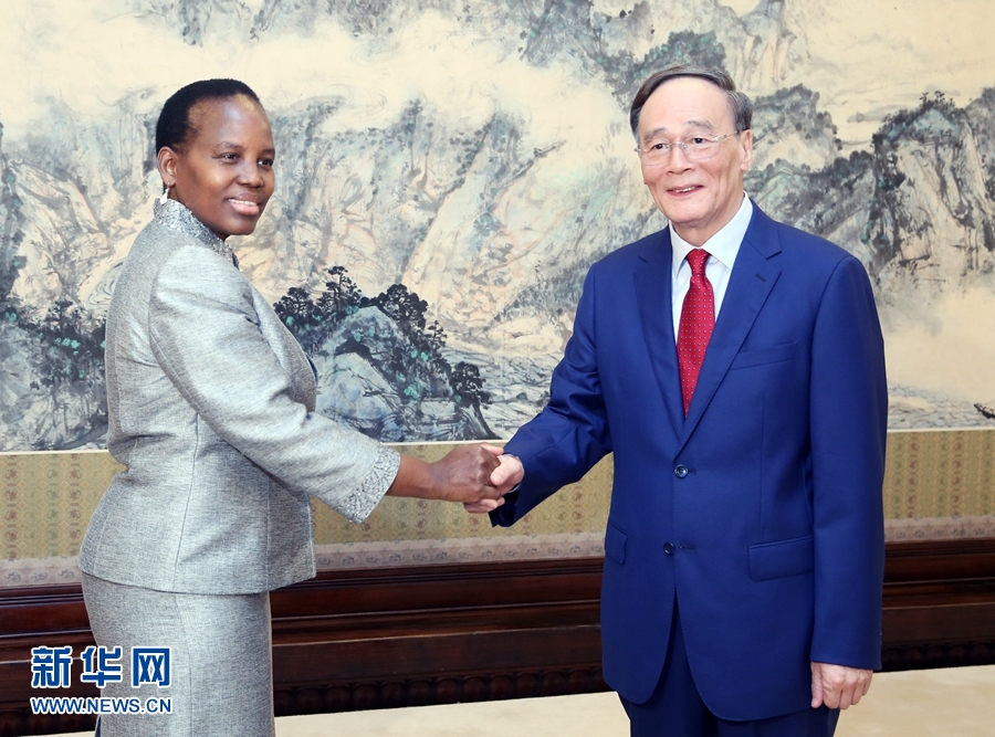 ?7月13日,國(guó)家副主席王岐山在北京中南海會(huì)見博茨瓦納國(guó)際事務(wù)與合作部長(zhǎng)尤妮蒂·道。 新華社記者 姚大偉 攝