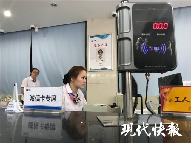 現(xiàn)代快報(bào)記者看到,周萍將市民卡交到營業(yè)人員手中,經(jīng)過核驗(yàn),確認(rèn)她為民政部門報(bào)送的"誠實(shí)守信好市民",點(diǎn)擊升級,不到1分鐘,有著就醫(yī)、乘車等功能的市民卡,就變身為"市民誠信卡"。