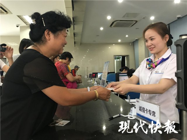 7月11日上午10點(diǎn),南京市熙南里智匯營業(yè)廳,市民周萍站到達(dá)一個(gè)特殊的窗口—— " 誠信卡專席"。在這里,她持有的市民卡將進(jìn)行升級,變身"市民誠信卡"。