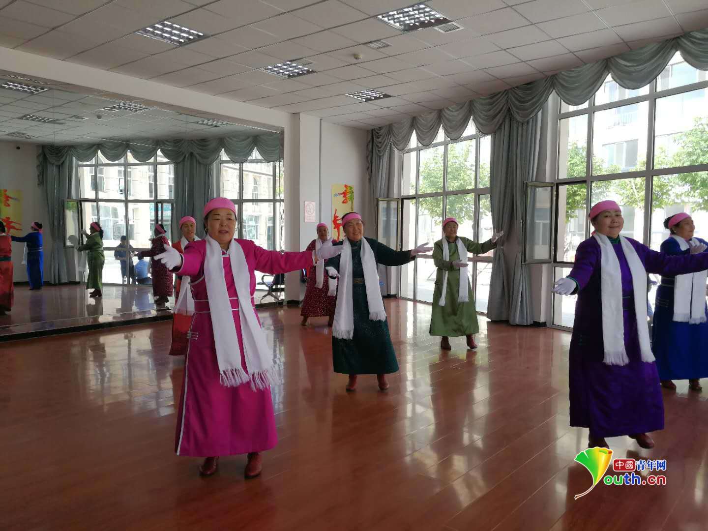 愛祺樂(lè)牧民養(yǎng)老園區(qū)內(nèi)的老人們?cè)谶M(jìn)行歌舞表演。中國(guó)青年網(wǎng)記者王曉蕓 攝