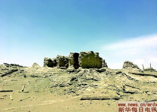 ▲樓蘭遺址內(nèi)的“三間房”(研究認(rèn)為是當(dāng)時的官衙)。