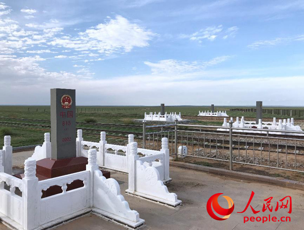 中蒙邊境815、816號(hào)界碑。人民網(wǎng)記者 王捷 攝
