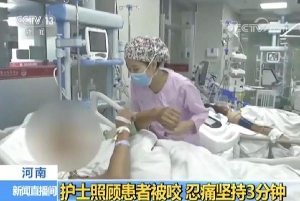 近日,在河南新鄉(xiāng)市醫(yī)學(xué)院第一附屬醫(yī)院的急診監(jiān)護(hù)室內(nèi),護(hù)士劉珊在照料重傷病患時,手臂突然被患者咬住。因為擔(dān)心掙脫會導(dǎo)致病人身上的插管脫落,劉珊就一直沒有將手臂拿開。直到醫(yī)護(hù)人員給患者打了鎮(zhèn)靜劑后,患者才慢慢松開了牙齒,此時劉珊已經(jīng)堅持了3分鐘。