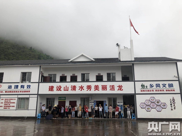 云陽縣盤龍街道活龍社區(qū)居民委員會(huì)整潔的辦公場地,由于下雨,當(dāng)?shù)卮迕裨谶@里向記者介紹他們的綠色發(fā)展新路子。(管昕 攝)