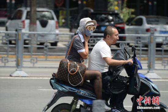 資料圖:氣溫升至37℃以上,遮陽(yáng)傘、墨鏡、口罩等用品成了民眾出行的必備品。中新社記者 劉文華 攝