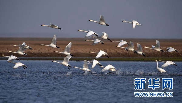 這是在東洞庭湖國家級自然保護區(qū)內(nèi)拍攝到的小天鵝(2017年3月1日攝)。新華社記者 李尕 攝