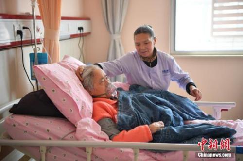資料圖:護(hù)工精心照料住院病患。 中新社記者 劉冉陽 攝