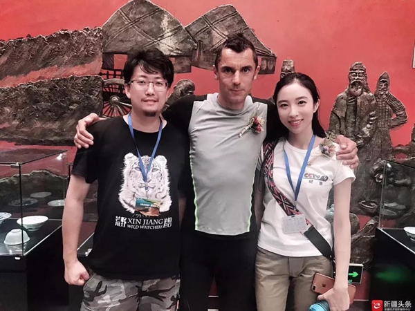 從左至右,央視導(dǎo)演劉曉,極限挑戰(zhàn)者讓·瑪利,央視導(dǎo)演劉千僡。圖 新疆經(jīng)濟(jì)報(bào)新媒體中心記者邢靚