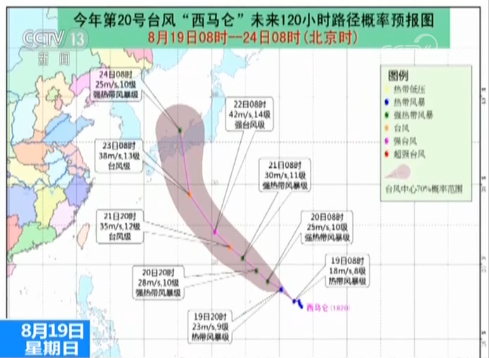 今年第20號臺風(fēng)“西馬侖”也于昨晚在西北太平洋洋面生成,預(yù)計“西馬侖”將向西北方向移動,最強(qiáng)可達(dá)臺風(fēng)級到強(qiáng)臺風(fēng)級,未來“西馬侖”對我國海區(qū)無影響。