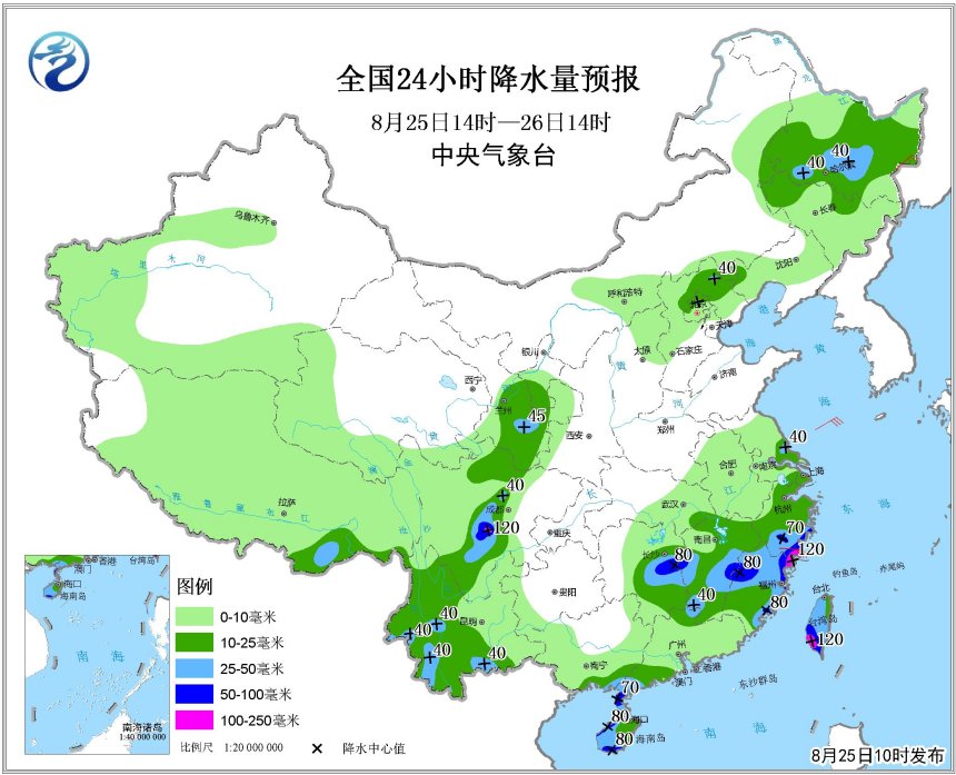 孫軍:由于熱帶低壓登陸后向西移動(dòng)緩慢,預(yù)計(jì)25日至27日,受熱帶低壓和季風(fēng)共同影響,江南和華南將有持續(xù)性降雨天氣,部分地區(qū)有大到暴雨,局地有大暴雨。浙江東南部、福建西部和南部、江西中南部、湖南中南部、廣西東北部、海南島、臺(tái)灣島等地的部分地區(qū)累計(jì)降雨量有100毫米至200毫米,局地達(dá)250毫米至400毫米。上述部分地區(qū)將有短時(shí)強(qiáng)降雨、雷暴大風(fēng)等強(qiáng)對(duì)流天氣。28日至30日,江南、華南仍將有大到暴雨,局地有大暴雨。