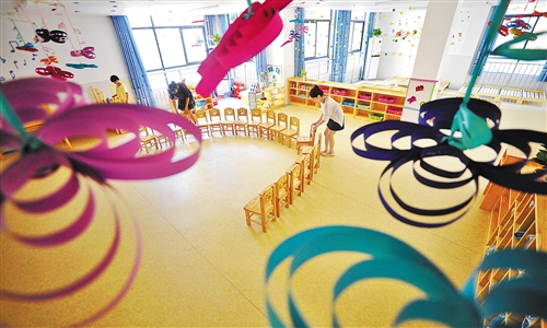 江西省新余市渝水區(qū)良山鎮(zhèn)教師在新校舍布景。近年來,該市以整合長(zhǎng)江流域豐富的文化和教育資源,不斷提升當(dāng)?shù)匚幕放平ㄔO(shè)水平。 周 亮攝