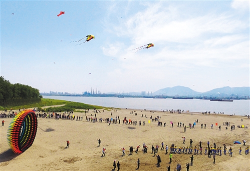 安徽省銅陵市義安區(qū)老洲鄉(xiāng)長(zhǎng)江岸邊市民和游客在放風(fēng)箏。近年來,銅陵市挖掘長(zhǎng)江文化元素,打造老洲長(zhǎng)江沙灘風(fēng)箏旅游節(jié)、大通古鎮(zhèn)長(zhǎng)江龍舟賽等特色長(zhǎng)江旅游文化項(xiàng)目。 過仕寧攝