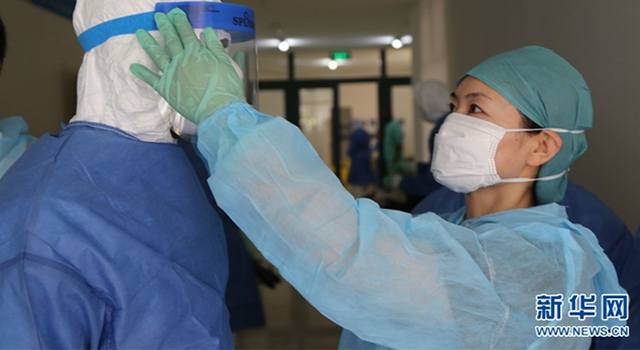 當(dāng)時有位年輕女重癥患者持續(xù)高燒,血管萎縮,很難扎針輸液。王新華隔著手套也根本感覺不到血管在哪。情急之下,王新華決定摘掉手套為患者扎針。身邊的同事比她還緊張:“這要是扎到手,就完了!”然而王新華沉著冷靜地握住患者的手,用摘掉手套的手仔細尋找著血管,而后屏住呼吸一針下去,“一針見血”,抗病毒藥物緩緩輸入患者體內(nèi),女患者病情逐漸穩(wěn)定。