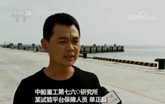 中船重工第七六O研究所某試驗(yàn)平臺(tái)保障人員單正磊:“當(dāng)時(shí)左右(晃動(dòng))都達(dá)到了15度,往左15度往右15度,(晃動(dòng))特別厲害,人在上面都站不穩(wěn)了?!?/p>