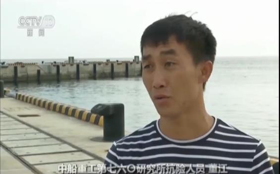 中船重工第七六〇研究所抗險(xiǎn)人員董江:“我直接就進(jìn)到水里了當(dāng)時(shí),當(dāng)時(shí)就找東西(抓),因?yàn)橛欣K子,水里面當(dāng)時(shí)他們給我們?nèi)恿撕枚嗬K子,就找繩子趕快拽。”