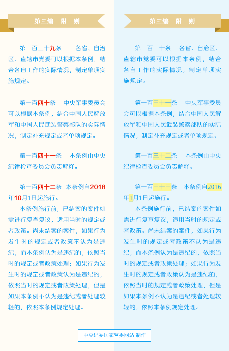 《中國(guó)共產(chǎn)黨紀(jì)律處分條例》修訂前后對(duì)照表