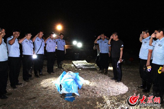 其中一名輔警遺體找到后,孫家集鎮(zhèn)派出所全體人員和參加搜救的戰(zhàn)友向英雄敬禮。