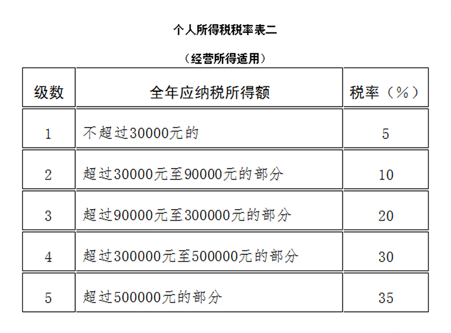 ?。ǘ┙?jīng)營所得,適用百分之五至百分之三十五的超額累進(jìn)稅率(稅率表附后);