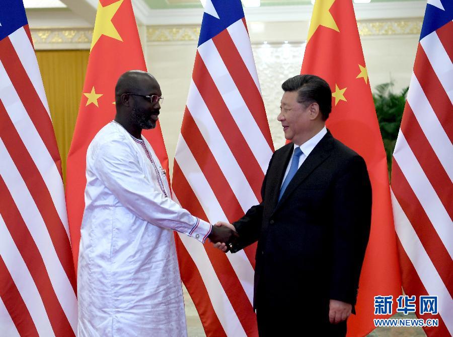 9月1日,國(guó)家主席習(xí)近平在北京人民大會(huì)堂會(huì)見(jiàn)利比里亞總統(tǒng)維阿。新華社記者 張領(lǐng) 攝
