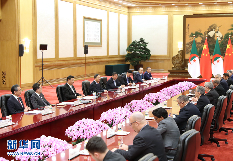 烏葉海亞表示,昨天,我向布特弗利卡總統(tǒng)報(bào)告了北京峰會(huì)的盛況。他讓我轉(zhuǎn)達(dá)對(duì)習(xí)近平主席的熱烈祝賀以及對(duì)中國支持非洲的衷心感謝。烏葉海亞表示,阿中關(guān)系歷史悠久。阿爾及利亞在爭取民族獨(dú)立和實(shí)現(xiàn)國家發(fā)展中得到中方寶貴支持,雙方在國際事務(wù)中一直緊密配合。阿方贊賞并支持北京峰會(huì)提出的中非合作新舉措,愿以此次雙方簽署“一帶一路”合作協(xié)議為契機(jī),深化雙方務(wù)實(shí)合作。