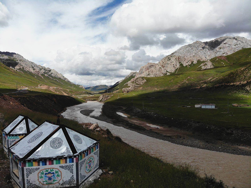 “彩色帳篷”——垃圾轉(zhuǎn)運(yùn)站,與三江源美景相映成趣。 人民網(wǎng)記者 余璐攝