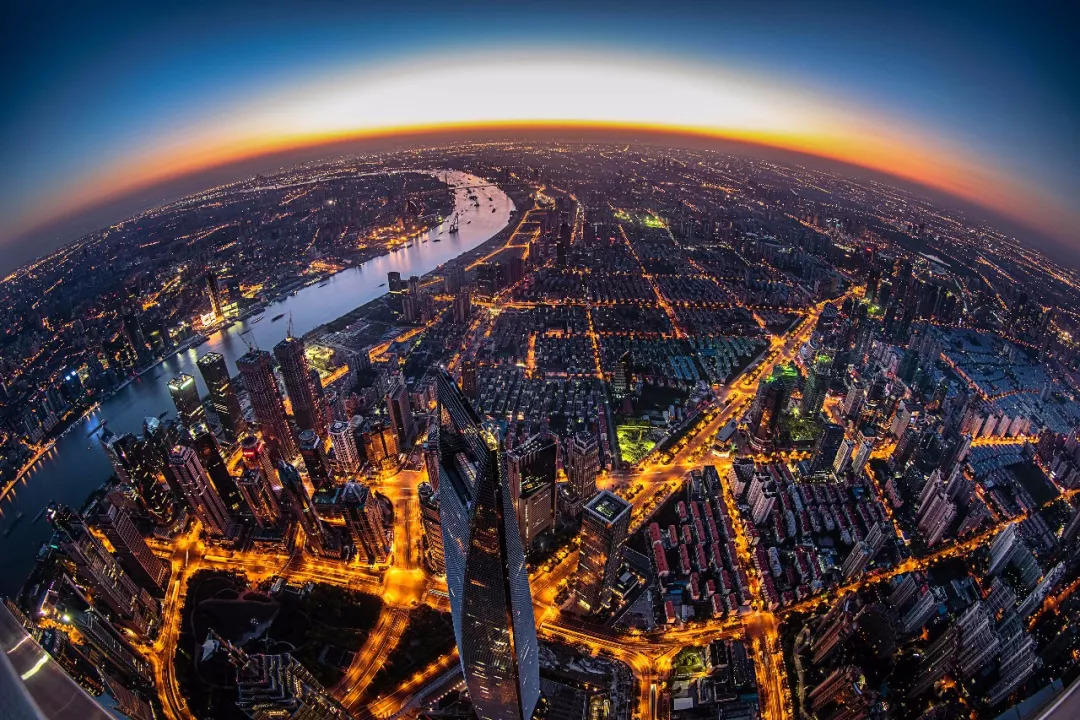以地平線的視角拍攝浦東的陸家嘴,
