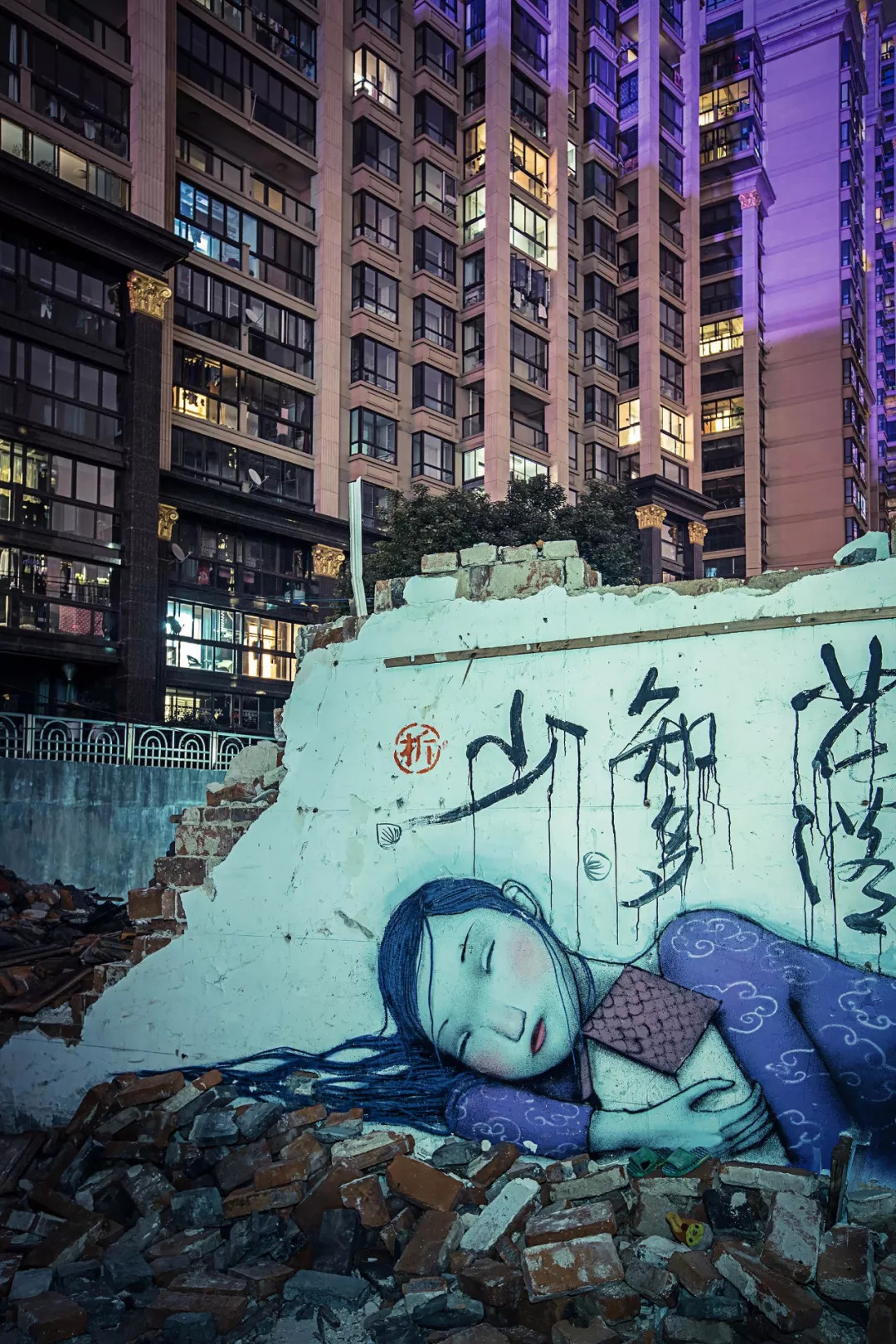 在即將被拆除的殘垣斷壁上,