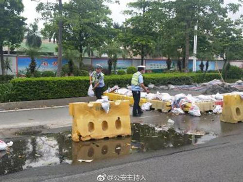 ▲面對(duì)超強(qiáng)臺(tái)風(fēng)“山竹”正面襲擊南粵,全省交警部門提高勤務(wù)響應(yīng)等級(jí),加強(qiáng)值班備勤與警力部署,警力全員在崗在位。臺(tái)風(fēng)來(lái)臨之際,交警門正在搬運(yùn)沙袋、清理路面。