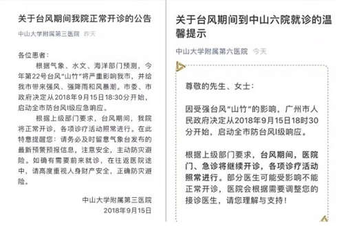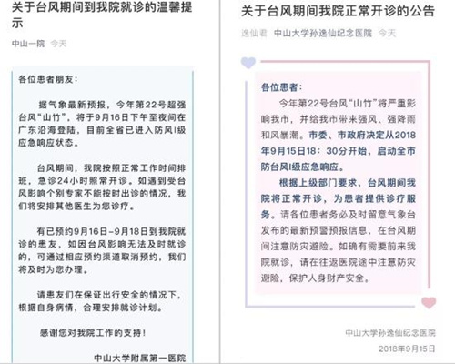 ▲各大醫(yī)院發(fā)布通知,臺(tái)風(fēng)期間正常上班、照常開診。