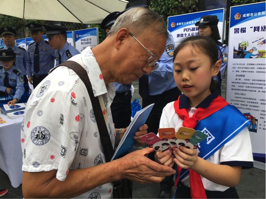 “如果收到信息,說您的家人受傷需要匯款,肯定是詐騙電話??ㄆ竺嬗兴膫€(gè)詐騙的典型案例,爺爺您可以了解一下?!鄙俪切W(xué)四年級(jí)的李彥孜一邊拿著精巧可愛的網(wǎng)絡(luò)安全知識(shí)熊貓書簽,一邊用稚嫩的聲音做介紹。李彥孜是宣傳網(wǎng)絡(luò)安全的小志愿者,她告訴傳播君,這些網(wǎng)絡(luò)安全知識(shí)都是用課余時(shí)間去了解的,“多一個(gè)人知道,就少一個(gè)人受害”。