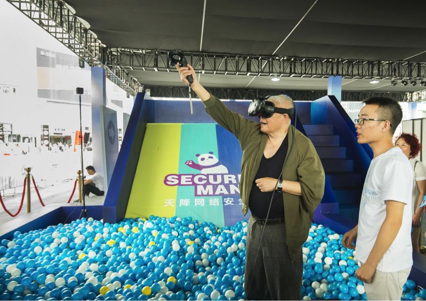 VR與滑梯、海洋球池結(jié)合,形成“連環(huán)暈眩術(shù)”,市民體驗(yàn)滑梯后,再戴上VR眼鏡,在“暈眩”后回答網(wǎng)絡(luò)安全知識(shí)問題;