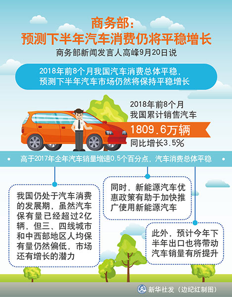 圖表:商務部:預測下半年汽車消費仍將平穩(wěn)增長 新華社發(fā) 邊紀紅 制圖