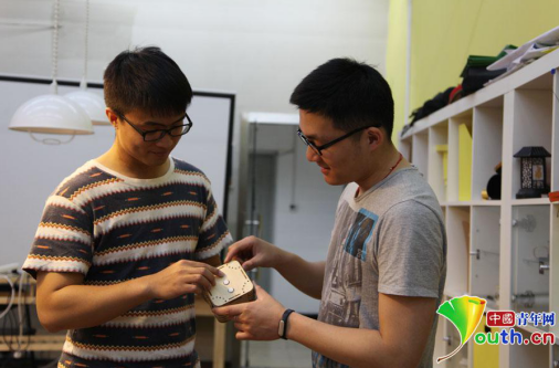 清華大學(xué)創(chuàng)客空間協(xié)會(huì)成員張承巍(左)與畢瀅(右)正在介紹他們的創(chuàng)意成果“音樂盒子”。資料圖