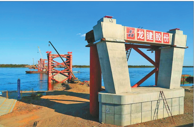 中俄黑龍江大橋施工現(xiàn)場。
