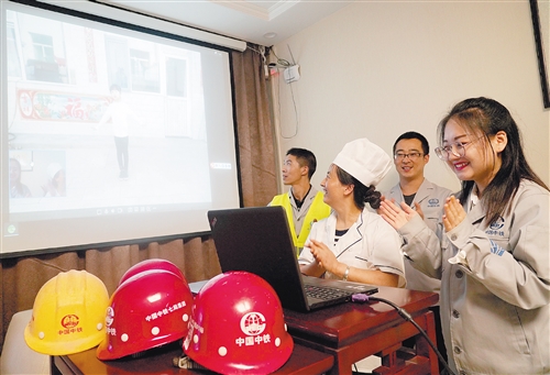 10月4日,正在建設(shè)中的北京地鐵19號(hào)線牡丹園車站,中鐵七局職工通過視頻投影設(shè)備和親人連線交流。國慶假期,許多建設(shè)者堅(jiān)守崗位無法與家人團(tuán)聚,項(xiàng)目部為他們開通親情連線,利用微信、在線視頻等多種通訊工具讓他們和遠(yuǎn)在外地的親人視頻通話。經(jīng)濟(jì)日?qǐng)?bào)記者 趙 晶攝