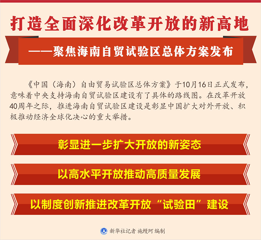新華社北京10月16日電? 題:打造全面深化改革開(kāi)放的新高地——聚焦海南自貿(mào)試驗(yàn)區(qū)總體方案發(fā)布