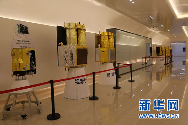 ↑↑在公司大廳顯著位置展示的“吉林一號”組星發(fā)射狀態(tài)等比模型。