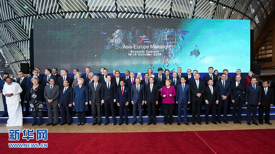 當(dāng)?shù)貢r(shí)間10月19日上午,國(guó)務(wù)院總理李克強(qiáng)在布魯塞爾出席第十二屆亞歐首腦會(huì)議。這是與會(huì)領(lǐng)導(dǎo)人合影。 新華社記者 丁海濤 攝